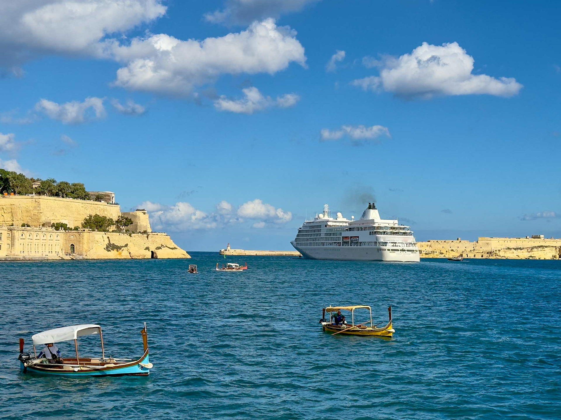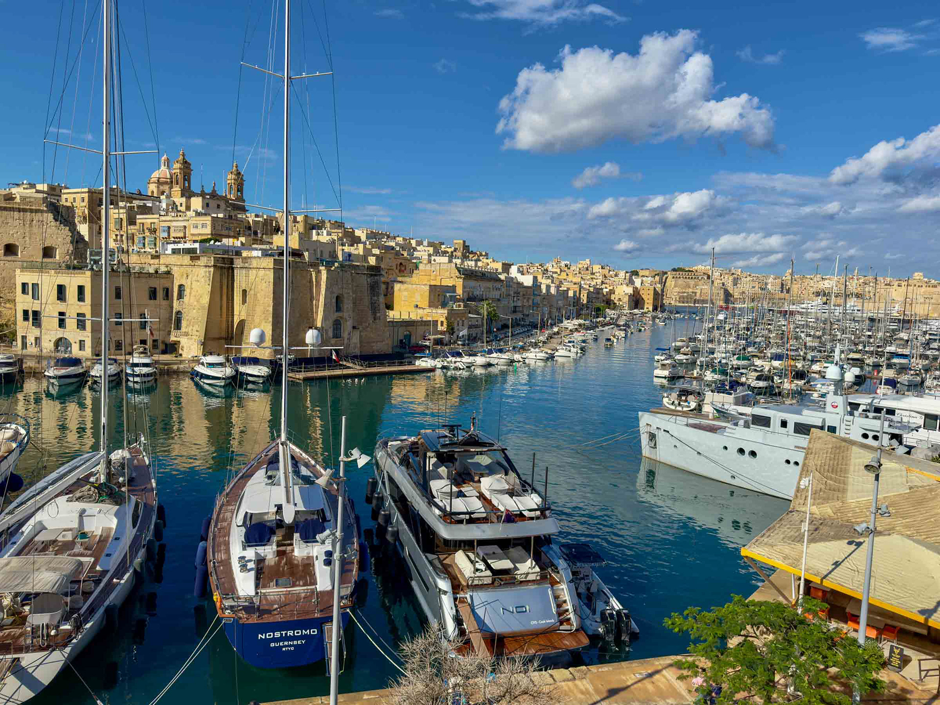 The attraction of Malta to all the civilisations that have occupied it for at least 8,000 years is its magnificent sheltered defensible deep water harbour. The golden limestone island rises steeply out of the azure sea and was heavily fortified first by the Knights of Malta and then by the British Navy.