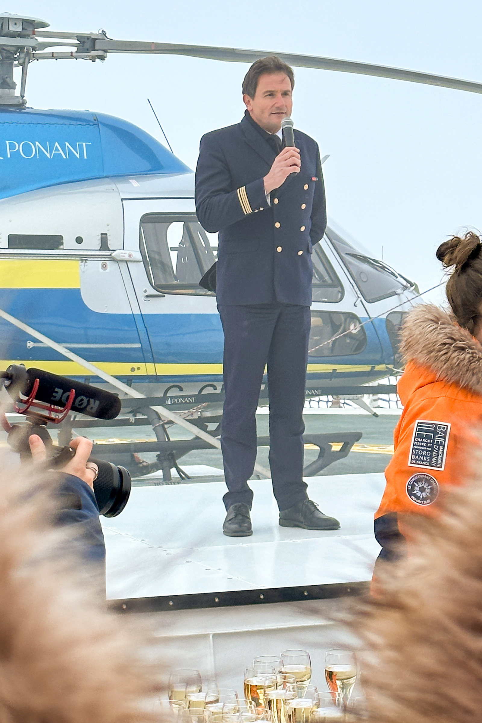 Captain Marchesseau announcing that we had achieved his desired record, just before we all got a glass of champagne to celebrate - the French do these things in style!